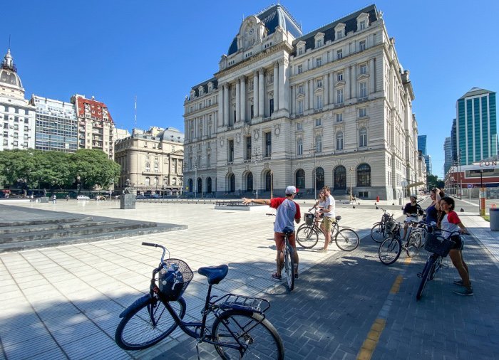 Turens sidste stop er pladsen, Plaza de Mayo, hvor argentinernes spektakulære lyserøde regeringsbygning ligger. Herfra går turen tilbage mod startstedet, hvor cyklerne afleveres.