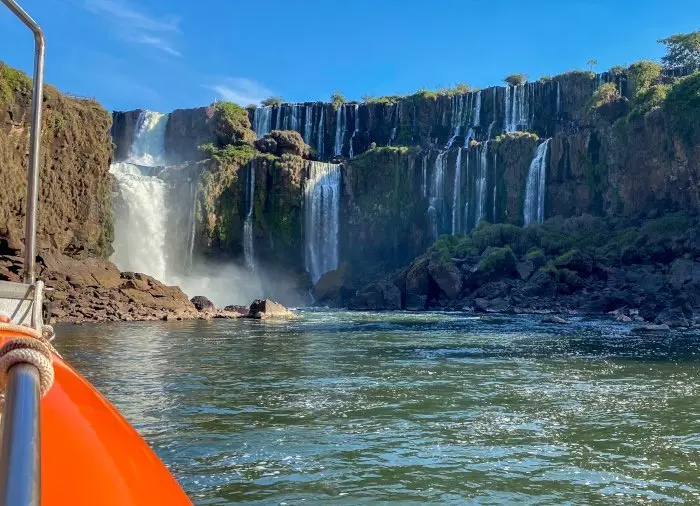 Du får set de gigantiske vandfald nedefra, og som afslutning sejles der hen under et af de mindre vandfald, så du kan få lov at prale med, at du har taget et brusebad i Iguazú-vandfaldene! Det er selvfølgelig helt frivilligt, om du har lyst til ligefrem at stille dig midt i vandkaskaderne. Uanset hvad, bliver du helt sikkert gennemblødt på turen, så det er en god ide at skifte til enten badetøj eller iføre dig en regnponcho. Du får udleveret en vandtæt taske til dine værdigenstande.