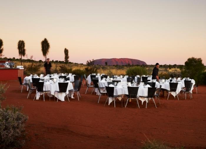 Nyd en middag under stjernerne på den prisvindende Sounds of Silence Restaurant. Midt i den australske ørken bliver du budt velkommen med et glas bobler. Lyden fra en didgeridoo lyder i baggrunden, mens solen langsomt går ned over Uluru. Når mørket er faldet på, byder værterne på lækker australsk BBQ med mulighed for at smage spændende australske specialiteter. Middagen serveres som buffet og der spises ved store borde med ca. 10 gæster ved hvert bord. Bagefter fortæller en astronom om den mægtige stjernehimmel over dig.