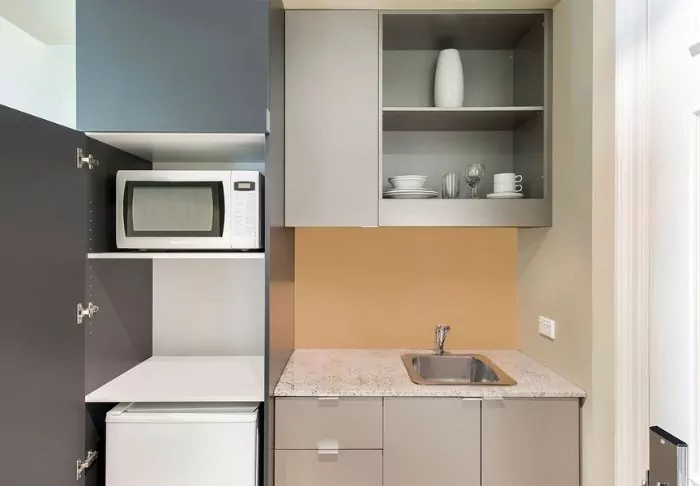 Du får et stort værelse med dit eget tekøkken, så du har mulighed for selv at lave morgenmad og smøre en sandwich til frokost. Tekøkkenet er udstyret med kaffemaskine, mikrobølgeovn, kogeplade, udstyr og opvaskemaskine. På værelset er der desuden fladskærms-TV, wifi, aircondition og værdiboks.