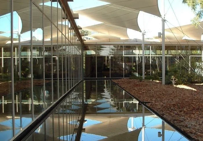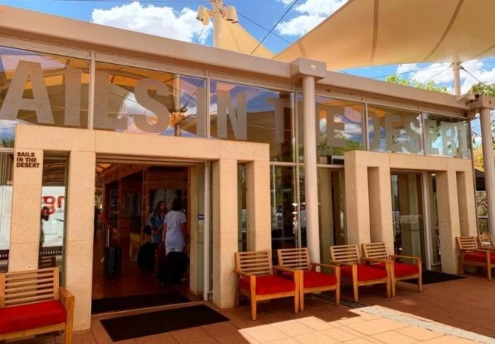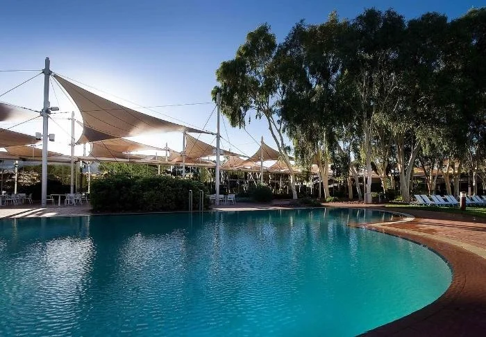 De store, hvide sejl, som giver navn til resortet, giver også skygge til de 228 værelser. Den australske sol er barsk og varm.