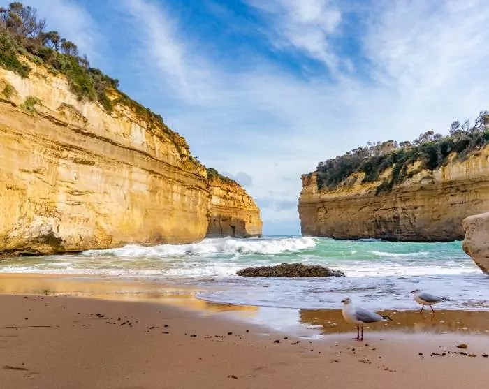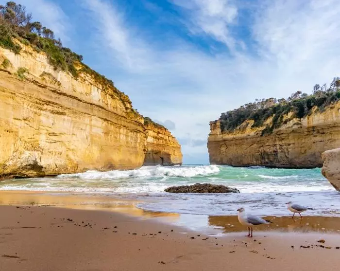 Det mest spektakulære vartegn på hele Victorias kyst og det mest fotograferede er uden tvivl de Tolv Apostle. De Tolv Apostle er dog i dag blevet reduceret til otte, da havet konstant æder af dem. Glæd dig til at opleve de finurlige kalkstenstoppe, der stikker op af havet ud for kysten. Det er et uforglemmeligt syn.