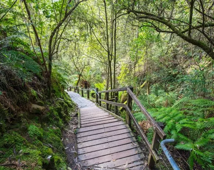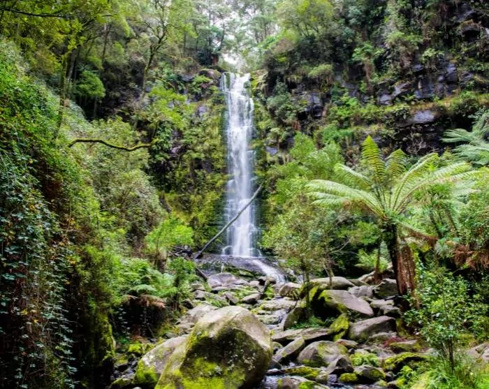 Vi anbefaler også et stop ved det eventyrlige vandfald Erskine Falls, som ligger omgivet af frodig regnskov lige uden for byen Lorne.