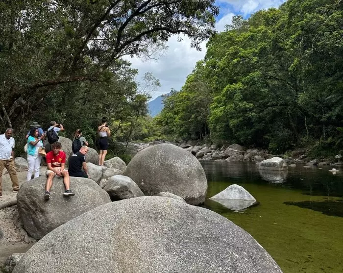 Du bliver hentet på hotellet i Sydney og kørt til lufthavnen. Ved ankomst i Cairns bliver du hentet og kørt til dit hotel. Du mærker hurtigt, at du nu befinder dig i det tropiske klima med høje temperaturer og høj luftfugtighed. Og her er frodigt! Hibiscus, frangipani, heliconia – de er her alle sammen, de eksotiske planter.