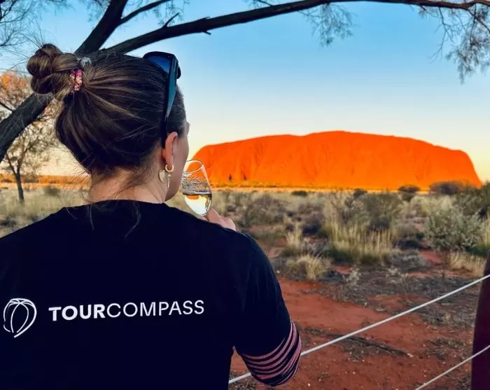 Ved dagens afslutning venter et af rejsens absolutte højdepunkter: solnedgangen over Uluru. Det er en magisk oplevelse at se den majestætiske sten skifte farve, efterhånden som solen forsvinder i horisonten. Det er let at forstå, hvorfor dette område er så helligt for de oprindelige beboere, aboriginerne.