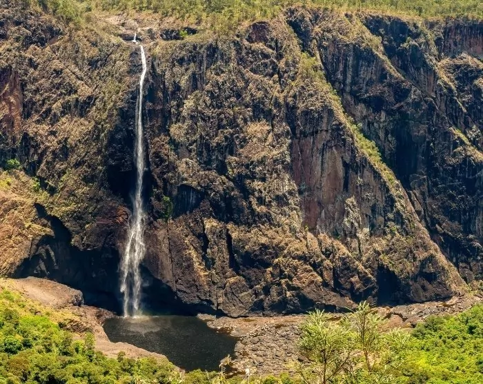 Vandfaldet har et fald på 268 meter og er derfor Australiens højeste enkeltfaldende vandfald. Det er ganske imponerende. I regnskoven lever den farverige kasuar. Det er en smuk flyveløs fugl, men hold dig godt på afstand, for den er også én af verdens farligste fugle pga. sine skarpe klør.