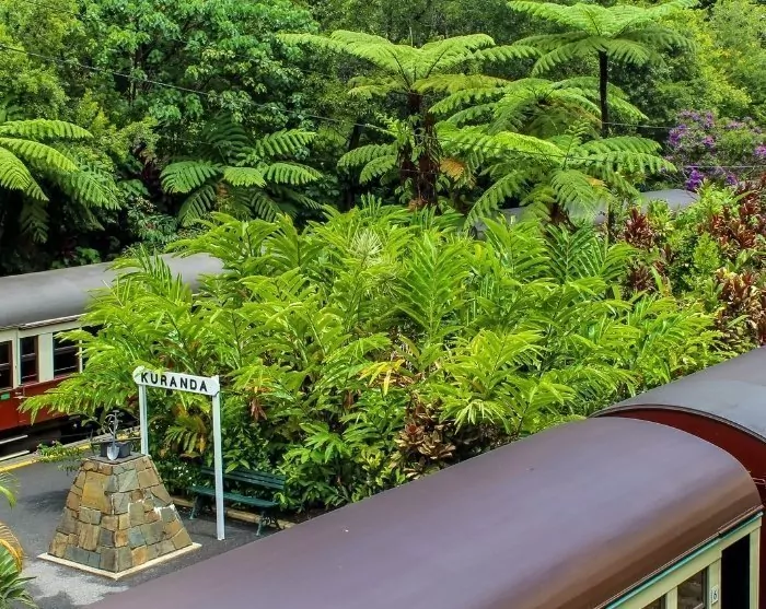 Du har også mulighed for at køre med det over 100 år gamle tog ad én af verdens smukkeste togstrækninger til den lille by Kuranda.