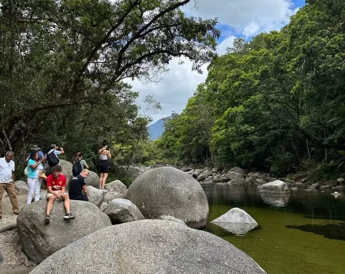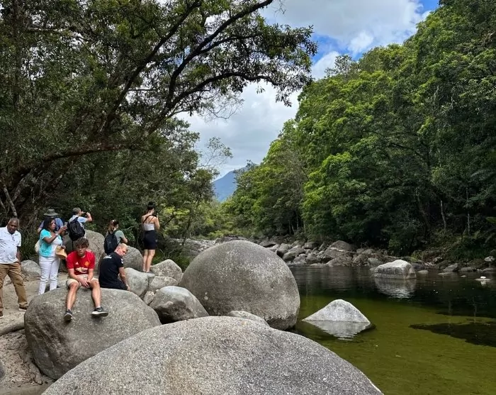 Efter Mission Beach nærmer du dig Cairns, men inden du når frem, kommer du forbi Babinda og de berømte Babinda Boulders. Dette smukke område byder på naturlige vandhuller og glatte stenformationer, som er perfekte til en forfriskende dukkert og en kaffepause.