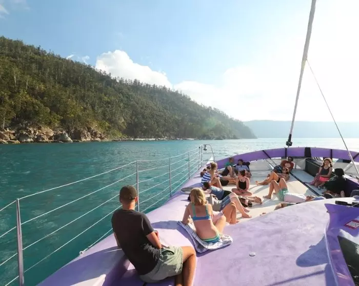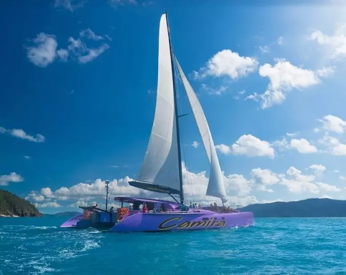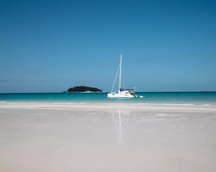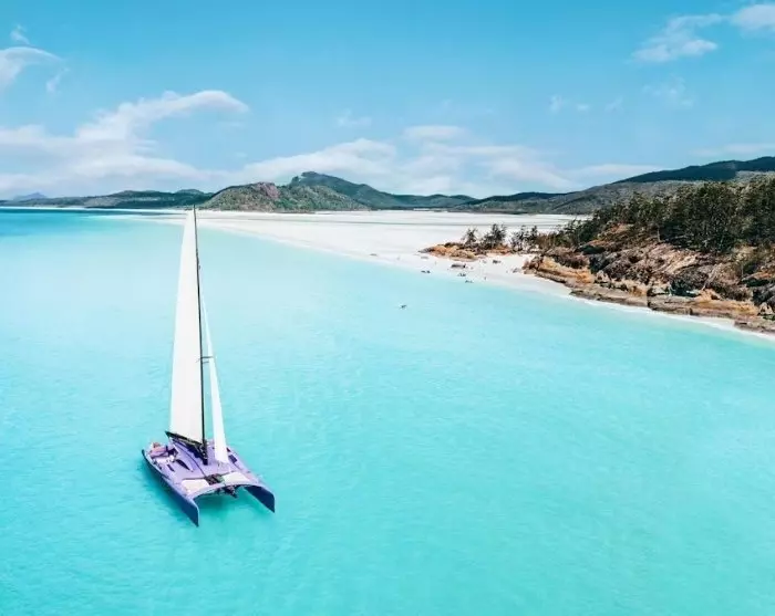 Ombord på en 85-fods katamaran forlader du havnen i Airlie Beach og sejler forbi øerne Daydream, Hamilton og Hook på vej til Whitsunday Island. Her ankommer du til den billedskønne Whitehaven Beach, der er kendt for sin lange kridhvide sandstrand, hvor sandet er så fint, at det knaser under dine fødder. Kombinationen af det hvide sand og klare turkise vand er helt magisk, og stranden er flere gange kåret til at være blandt verdens smukkeste.