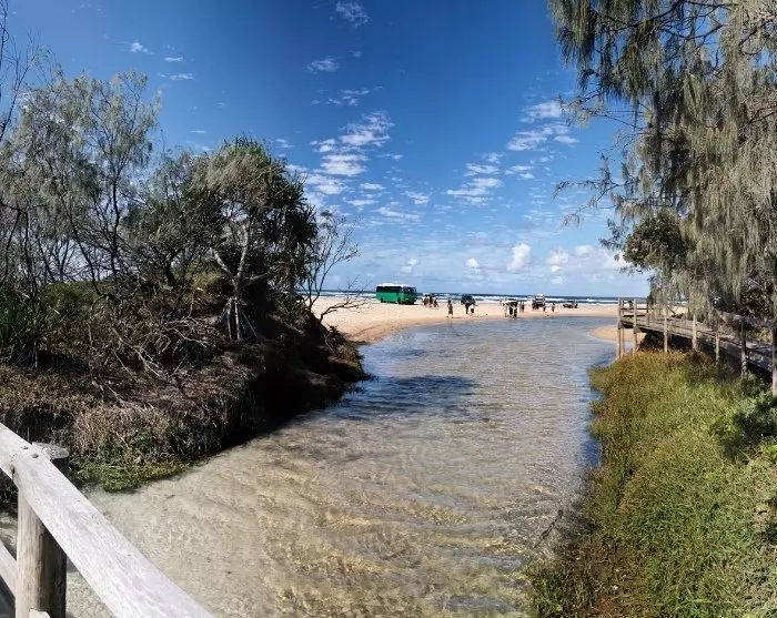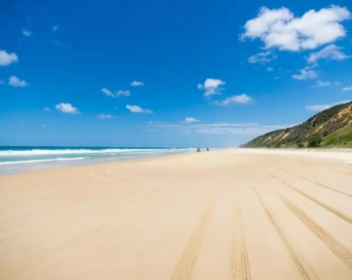 Dagen starter med en smuk 45-minutters færgetur over Great Sandy-strædet. Sammen med en passioneret guide skal øen udforskes i en firehjulstrukket bus – det er nemlig nødvendigt med firehjulstræk for at komme rundt til øens højdepunkter. Svøm en tur i den smukke Lake Mckenzie, oplev kæmpebregner i regnskoven ved Central Station og hold øje med dyrelivet, når du suser hen ad den smukke strand, 75 Mile Beach, som er øens ”hovedvej”. Herude kan du bl.a. være heldig at se den vilde hund, dingoen, som lever på øen. Det er også på 75 Mile Beach, at det rustne skibsvrag Maheno ligger dramatisk skyllet op på stranden efter en voldsom cyklon i 1935.