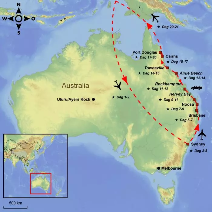 Tag med på et kør selv-eventyr på én af verdens smukkeste kyststrækninger, Great Ocean Road. Oplev landets to største byer, Melbourne og Sydney, den endeløse røde ørken med Uluru og slut af med afslapning i tropiske omgivelser i Cairns.