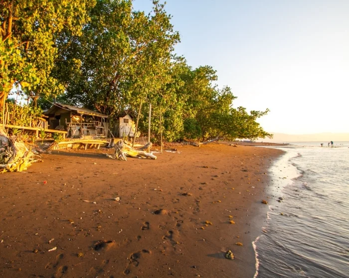 Om aftenen kan du nyde solnedgangen fra stranden, hvor palmer, den lille pavillon og de mange lokale fiskerbåde giver den perfekte kulisse.