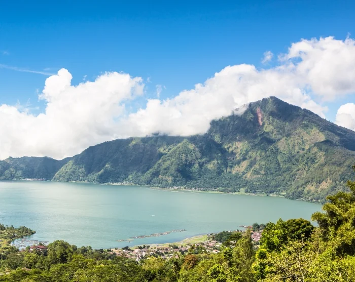 Næste stop er udsigtspunktet i Kintamani-højlandet, hvorfra du har en fabelagtig udsigt over kratersøen Batur og den 1.717 meter høje aktive vulkan, af samme navn, hvis seneste voldsomme udbrud fandt sted i 1963.