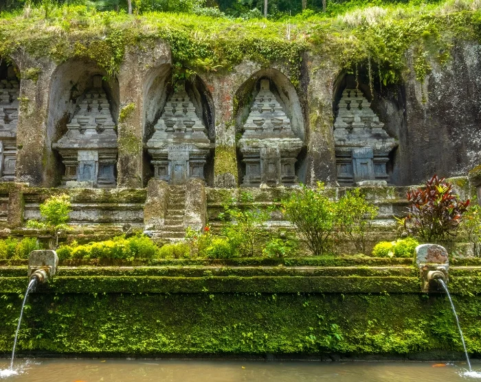 Inden du når Ubud, besøger du tempelkomplekset, Gunung Kawi, som ofte er en overset seværdighed. Gunung Kawi blev bygget sidst i det 11. århundrede og er dermed et af Balis ældste templer. Gunung Kawi ligger i en dal omringet af frodig jungle, og trapper fører forbi pragtfulde risterrasser og høje kokospalmer ned til selve templet. Langs templet løber Pekerisan-floden, som har religiøs betydning for de balinesiske hinduister. Det siges nemlig, at vand som passerer en helligdom, omdannes til vievand. Når du kommer til floden, skal du over en mindre stenbro for at komme til templets hovedattraktion, som er de gamle kongegrave, der er hugget ind i klipperne. Her får du tid til at gå rundt og nyde det gamle, fredfyldte sted.