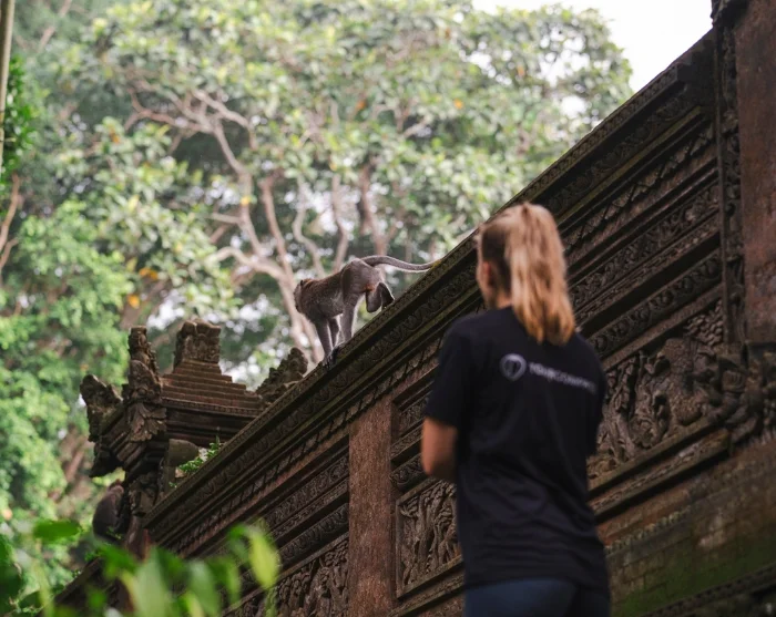 Du bliver hentet på hotellet af din guide og chauffør, og turen går til de berømte risterrasser i Tegalalang, som hører til blandt Balis mest ikoniske. Her bølger de grønne rismarker ned ad de stejle skråninger som et levende mønster, og små vandingskanaler snor sig gennem terrasserne efter det traditionelle subak-system, der har været en del af Balis kulturarv i århundreder. Fra udsigtspunkterne kan du være heldig at opleve lokale bønder, der arbejder i markerne, mens du tager billeder af det fantastiske sceneri, der er blandt øens mest fotograferede.
