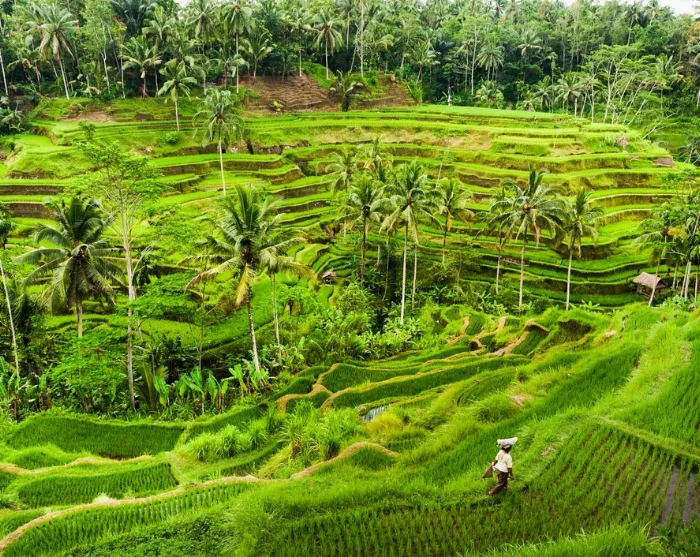 Ubud ligger utroligt smukt omgivet af bjerge, dybe dale og nogle steder dybe kløfter. I den tætte jungle løber Ayung-floden og bag bebyggelserne kan du skimte små, fine templer og smukke rismarker.