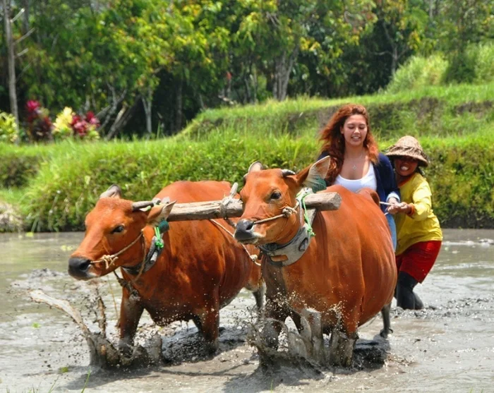 Efter morgenmaden bliver du hentet på hotellet og turen går mod landsbyen Rumah Desa, hvor du bliver mødt af en lokal vært, som vil vise dig rundt. Du vil se og høre om, hvordan familierne bor, laver mad, bygger huse og driver landbrug og hvis du har mod på det, har du mulighed for selv at deltage i aktiviteterne. Der venter dig ligeledes en gåtur gennem landsbyen med små huse, templer, den lokale skole og et smukt landskab med eksotiske planter og træer. Du kommer også forbi de fineste grønne rismarker, hvor du vil opleve, hvordan der arbejdes med vandbøfler, og du oplever hvordan der klatres i kokospalmer og hvordan der udvindes kokosolie.