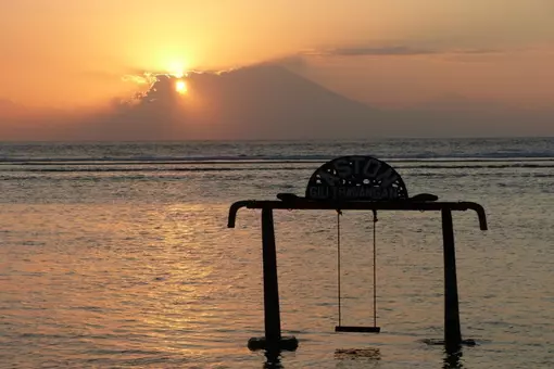 Om dagen er atmosfæren afslappet og om aftenen er der stemning og glade dage ved de mange små restauranter og barer. På vestsiden af øen kan du nyde de smukke solnedgange over Bali, og hvis du er heldig og vejret er klart, vil du endda kunne se solen gå ned bag vulkanen Mt. Agung på Bali. Det er en oplevelse, du aldrig glemmer! Her er ingen asfalterede veje og biler, men i stedet cykler og hestevogne.