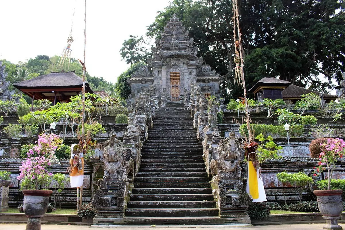 Efter besøget i Penglipuran bliver du kørt til det nærtliggende tempel Kehen fra det 11. århundrede. Templet bliver ofte sammenlignet med det storslåede modertempel Besakih på grund af lighederne og den fantastiske arkitektur, der gør det til et af Balis smukkeste templer. Kehen-templet er placeret på skråningen af højderyggen Bukit Bangli og 38 trin fører op til den smukt dekorerede indgangsport, hvor templet åbner sig med haver, imponerende stenudskæringer og de ikoniske meru-helligdomme med stråtage.