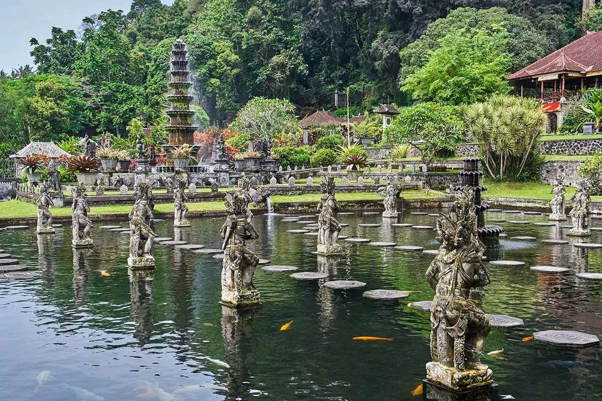 Herefter bliver du kørt til den utroligt smukke royale vandhave, Tirta Gangga, som blev bygget af den sidste konge af Karangasem provinsen i 1946. Efter Mt. Agungs voldsomme udbrud blev det meste af Tirta Gangga ødelagt, men haven blev genopbygget og er i dag åben for offentligheden. Tirta Gangga er utroligt smuk med fine statuer, springvand og bassiner med karper og de smukkeste lotus. Der vil være frokost på en lokal restaurant inde i selve haven.