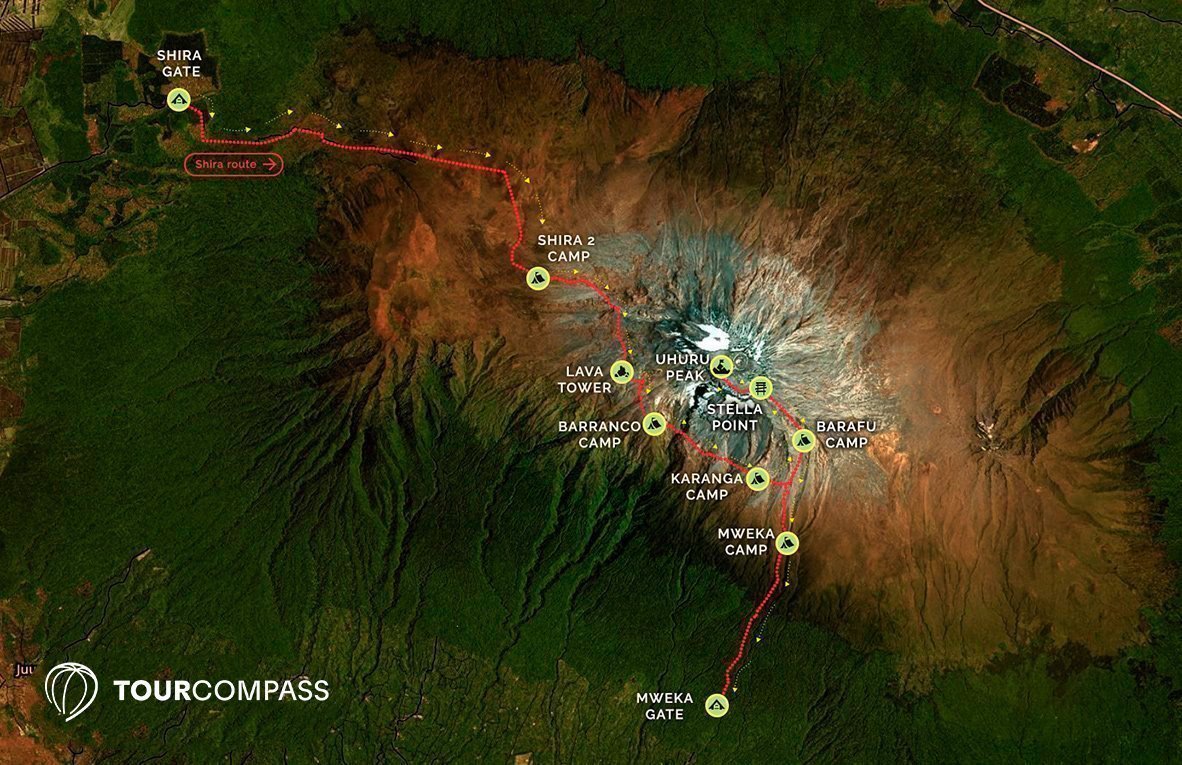 Shira-ruten er næsten identisk med sin lillesøster-rute, Lemosho. Dog tager Shira-ruten kun 6 dage.