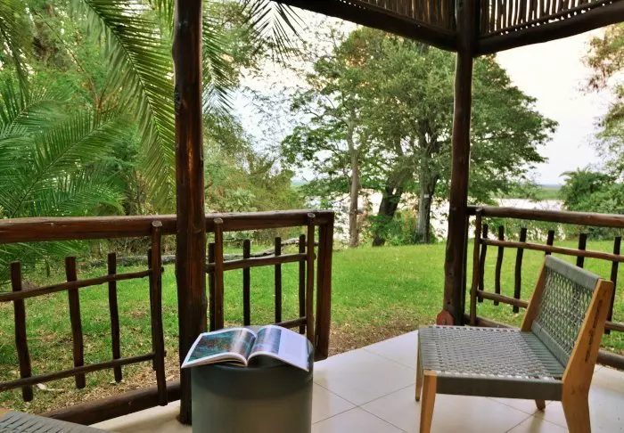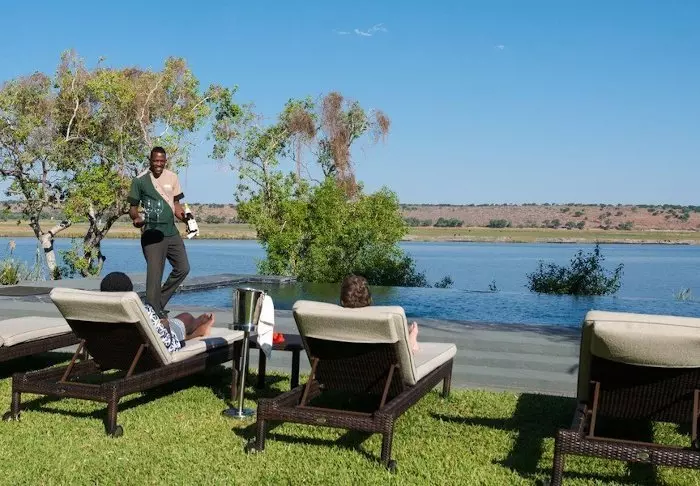 Alle 15 villaer er bygget på pæle ud over Chobe-floden. Fra de store balkoner er der en enestående udsigt til floden og den store ø Sedudu, som ligger midt i floden. Du behøver faktisk ikke flytte dig fra din terrasse, mens du er her. Dagen lang kan du sidde her og betragte livet på floden. Elefanter, der bader; både, som kommer forbi med turister; flodheste, der plasker og fugle, som sætter sig på terrassens rækværk. Bliver du tørstig, kan du lige smutte ind til din egen minibar, der er fyldt op med kolde drikke.