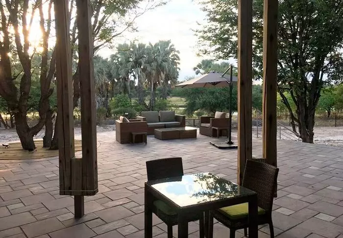 Det virkelige trækplaster på Maun Lodge er bar- og restaurantområdet, som er rigtig hyggeligt. Begge dele er centreret omkring en udendørs bålplads, hvor der er om aftenen ofte bliver tændt bål, så man spiser middag i flammerne skær.