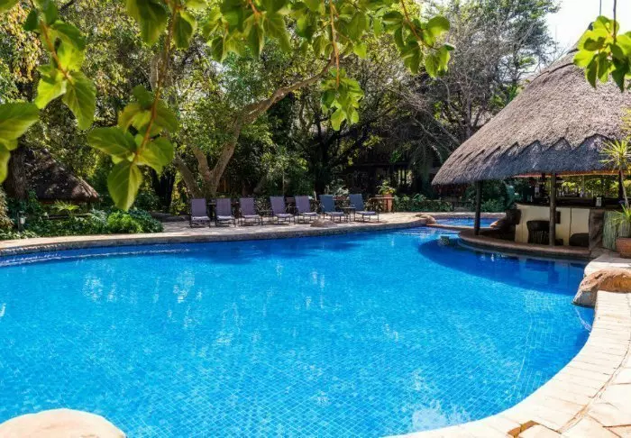 Trænger du til at blive kølet ned, kan du hoppe en tur i poolen, og er ryggen blev slatten efter timerne i safaribilen, lokker en tur i fitnessrummet eller spa’en måske.