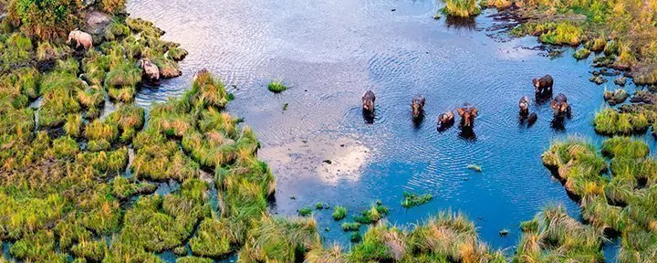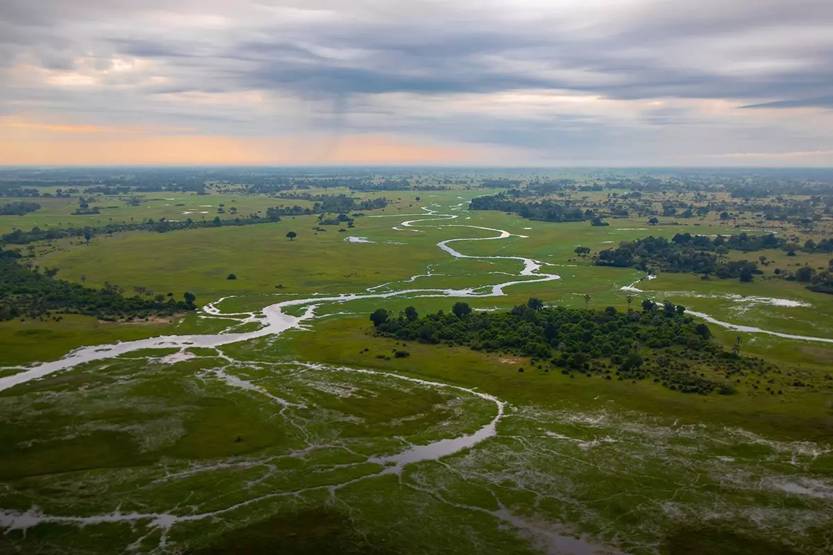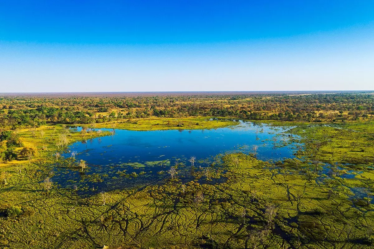 Landskaberne i denne del af deltaet er meget varierede. Fra høje mopane-træer og tæt buskads til flade områder, som i perioder er oversvømmet med vand og i andre tider ligger hen som tørre sletter med døde, spøgelsesagtige træer og til floder, som er hjem for hundredvis af flodheste.