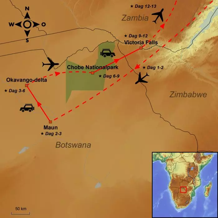I dag er der afrejse, og turen går med fly til Botswana med mellemlanding(er) undervejs.
