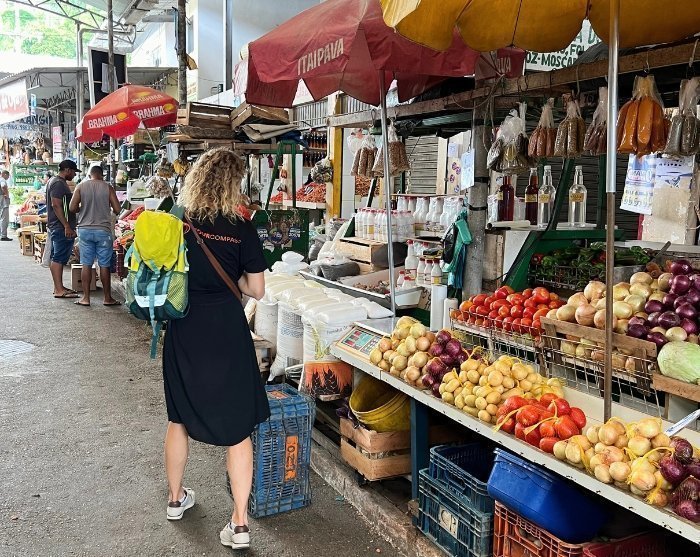 Herefter går turen til det lokale marked, hvor der skal købes ingredienser til dagens madlavningskursus. Du skal nemlig lære at lave ”moqueca”, som er en lokal fisk- og skaldyrsstuvning, samt en typisk dessert.
