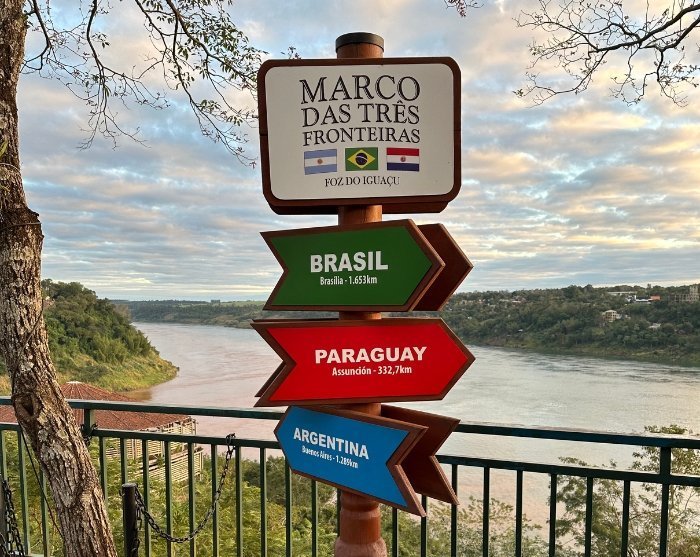”Three Borders Landmark” eller oversat ”De 3 grænsers vartegn” er et fascinerende sted lige udenfor Foz do Iguaçu ved sammenløbet af floderne Iguazú og Paraná, hvor grænserne mellem Brasilien, Argentina og Paraguay mødes.