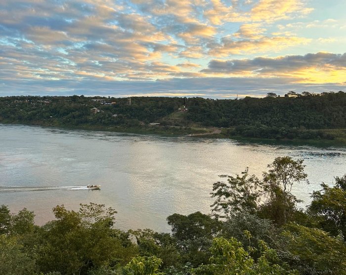 Solnedgangstur ved landegrænsen mellem Brasilien, Argentina & Paraguay