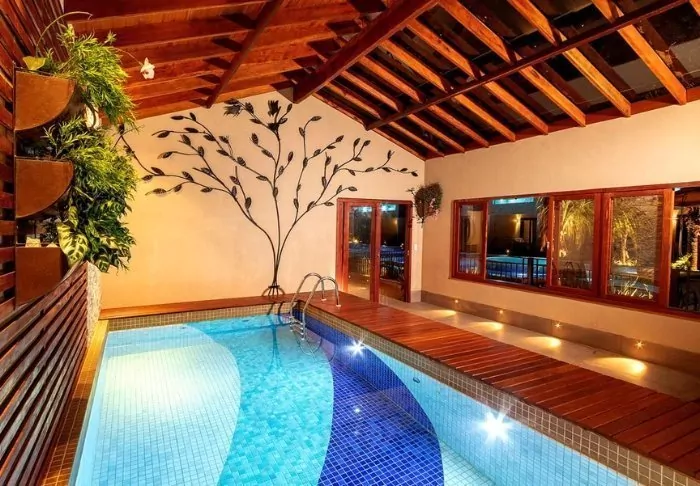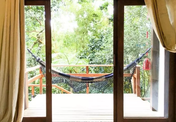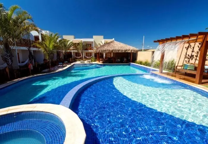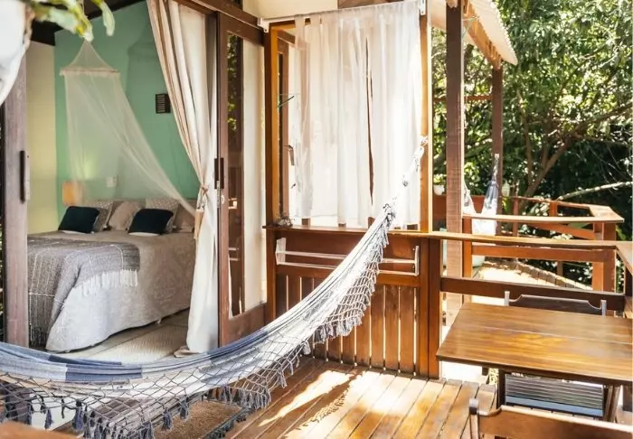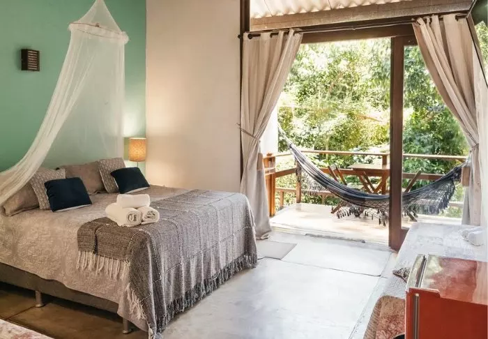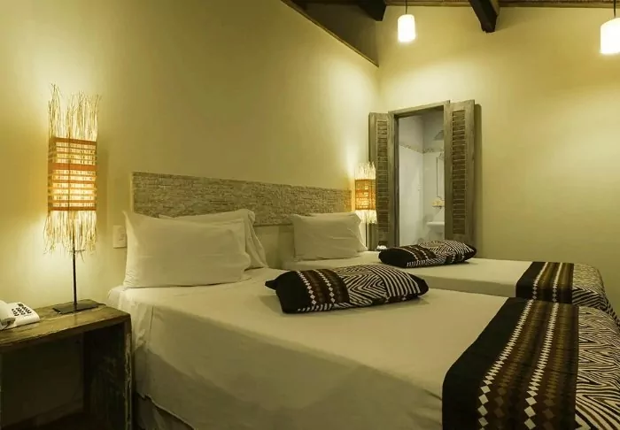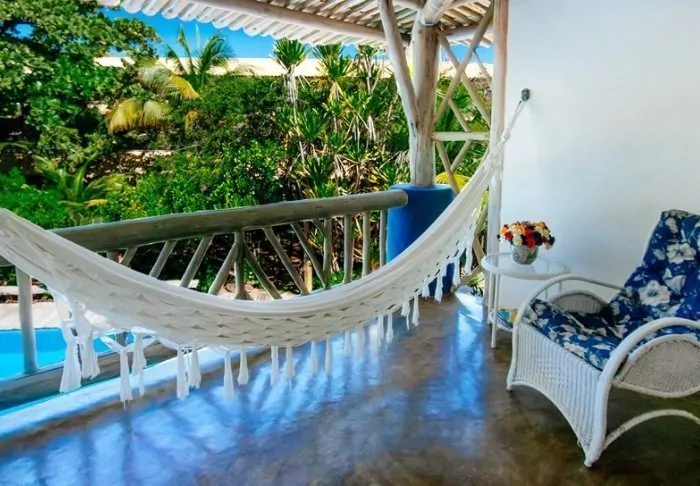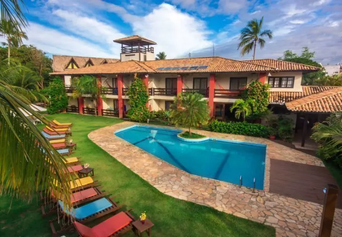 Omgivet af smuk natur og lyden fra havets bølger og fuglenes sang ligger det hyggelige hotel Pousada Naturalia. Hotellets er bygget i naturlige materialer og det blender godt ind med den omkringliggende tropiske skov.