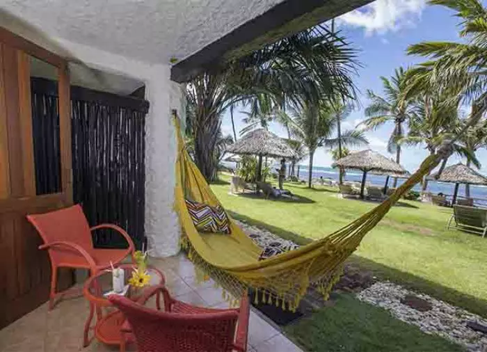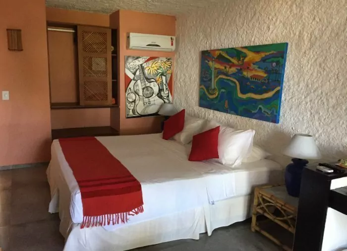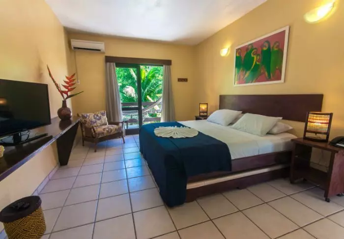 Værelserne er simpelt indrettede med farverige billeder fra en lokal kunstner, og har aircondition, gratis wi-fi, tv, værdiboks, hårtørrer og minibar. På terrassen eller altanen kan du slappe af i en hængekøje mens du nyder lyden fra bølgerne.