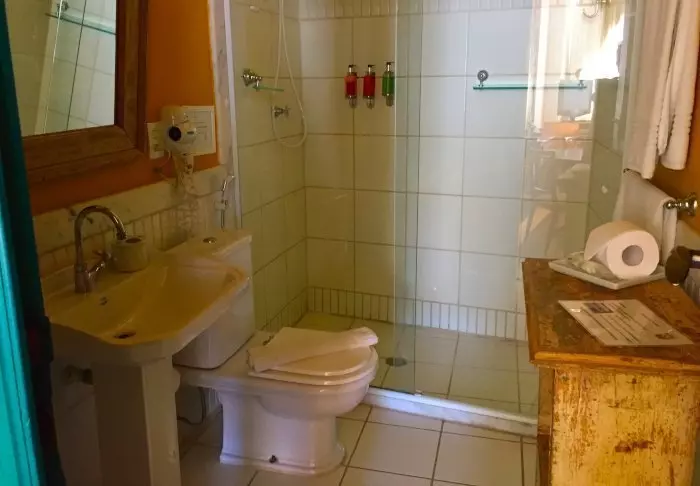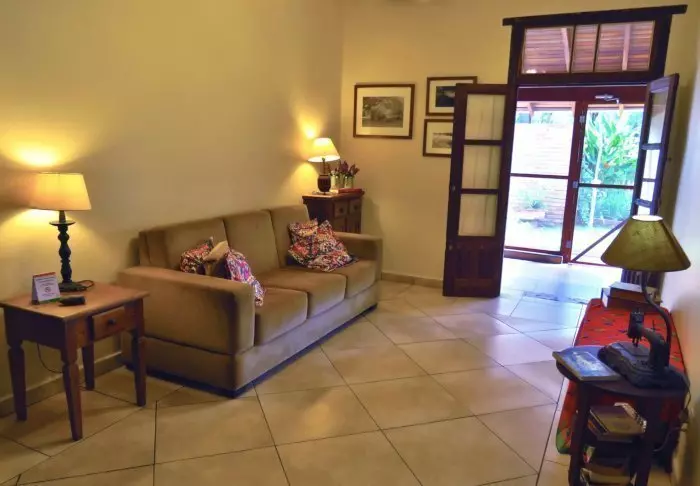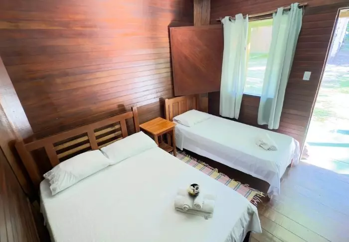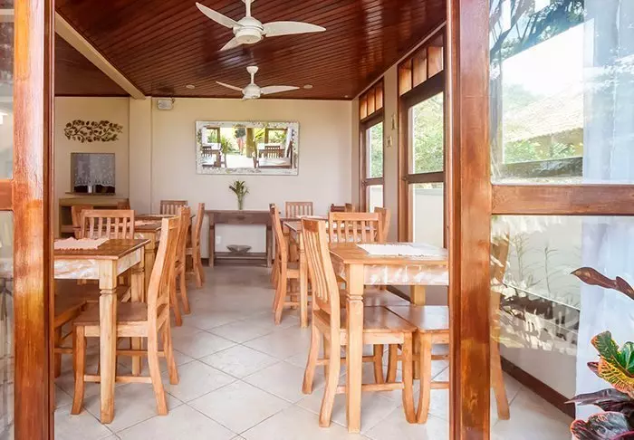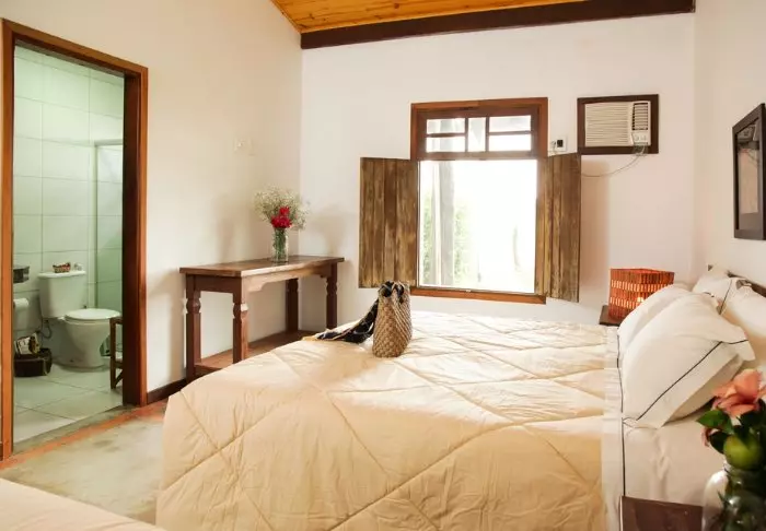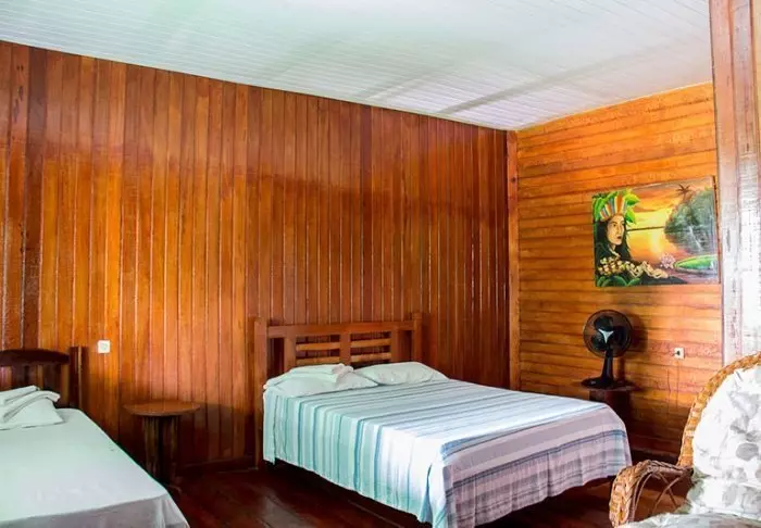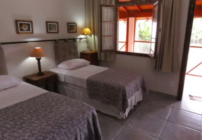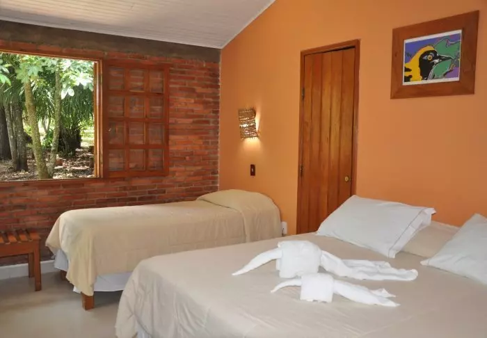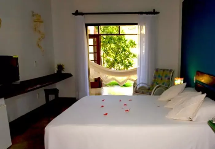 Pousadaen ligger omgivet af den frodige natur og her er en rolig og meget familiær stemning, da der kun er 7 værelser. Du skal op ad en smal stejl trappe for at komme op til værelserne, som ligger bag pousadaens restaurant. De er alle hyggeligt indrettet og udstyret med aircondition, loftvifte, tv, værdiboks, myggenet, minibar samt terrasse med hængekøje.