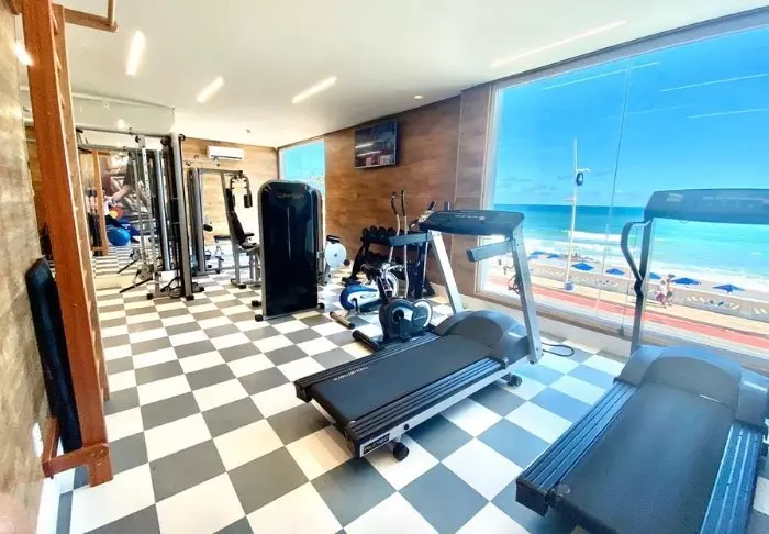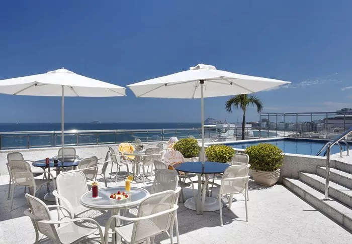 Fra hotellets tagterrasse har du en formidabel udsigt ned over den livlige Copabana-strand og ud over havet. Heroppe finder du også fitnessrum, sauna, bar samt en lille swimmingpool, der indbyder til en forfriskende dukkert.