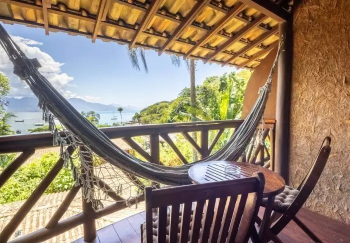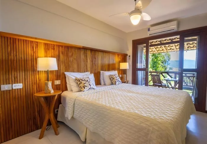 Alle værelser har privat balkon med hængekøje, hvor du kan ligge og nyde den skønne udsigt over havet og stranden i Vila do Abraão. Alle værelser har gratis wi-fi, aircondition, loftvifte, minibar og værdiboks.
