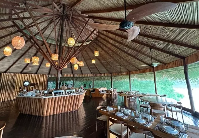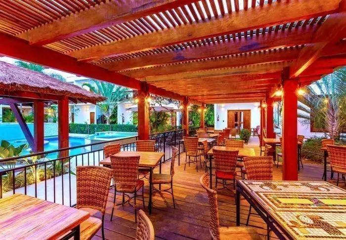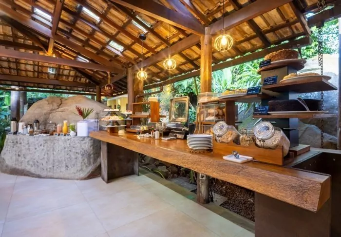 Ved strandbaren har du også mulighed for at bestille frokost og aftensmad, som nydes sammen med den flotte havudsigt – og måske en caipirinha. Her tilbydes internationale gourmetinspirerede retter med friske og lokale råvarer.