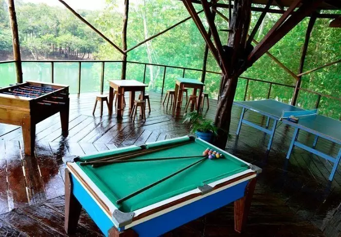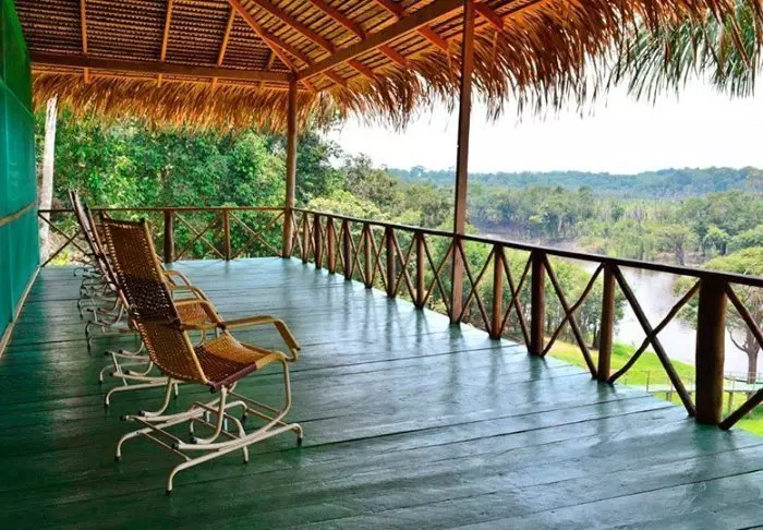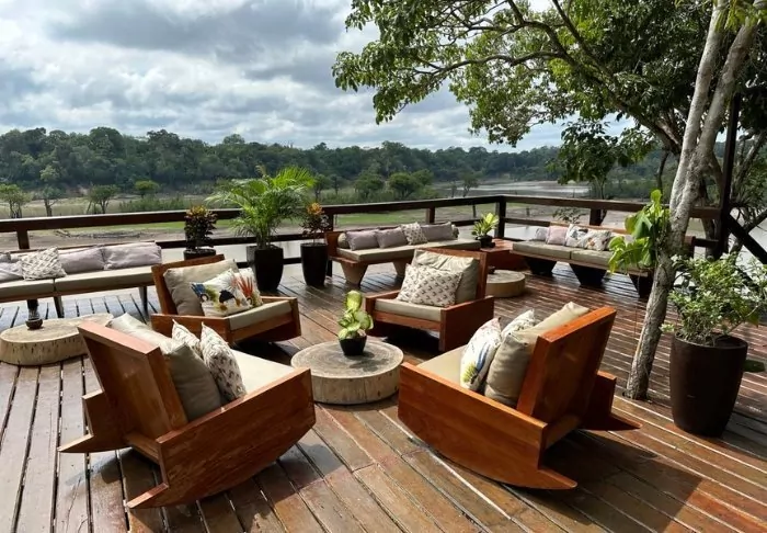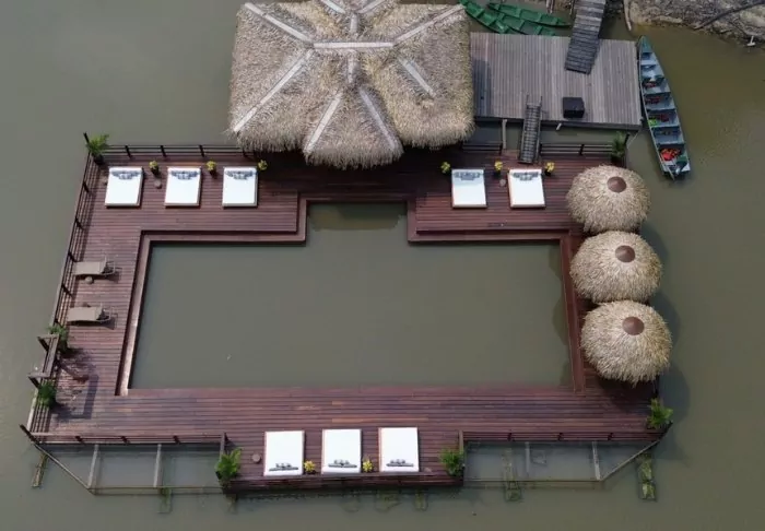 Efter dine oplevelser i junglen kan du nyde området omkring lodgen, hvor du udover restauranten også finder en solterrasse, fælles lounge med forskellige spil og en hyggelig have. Det er muligt at tage en svømmetur i floden og måske du er heldig at se en af de floddelfiner, som ofte holder til i området. Der er desuden kajakker til fri disposition, hvis du selv har lyst til at padle ud på eventyr.