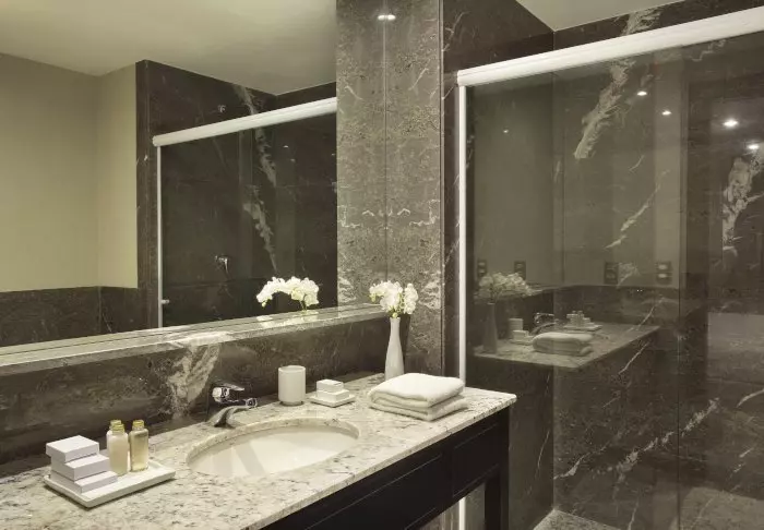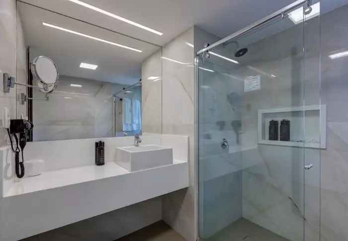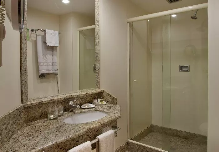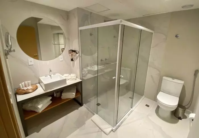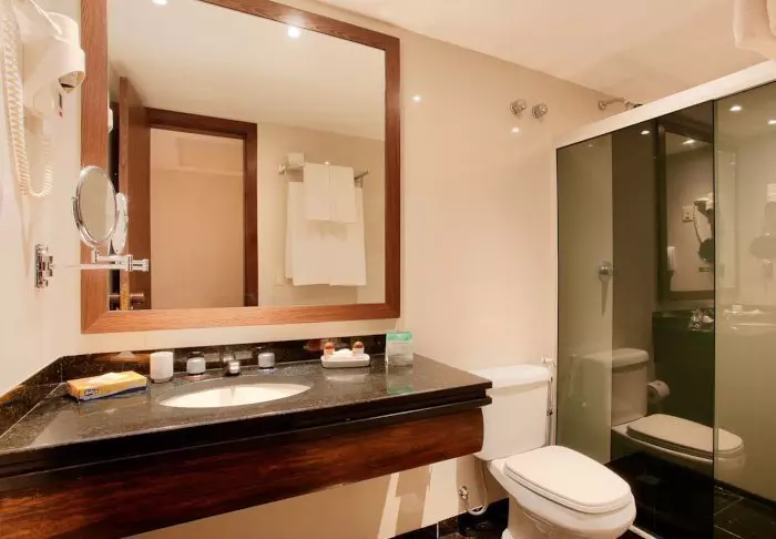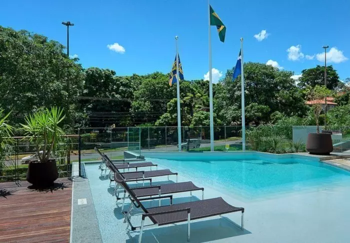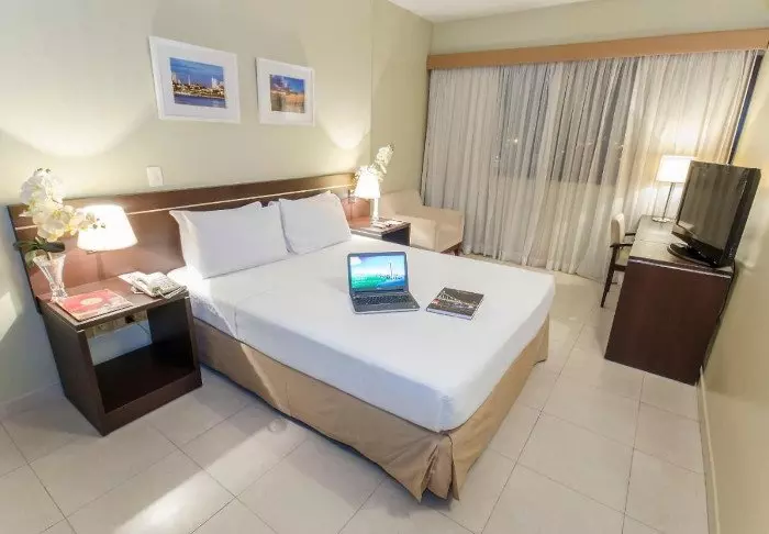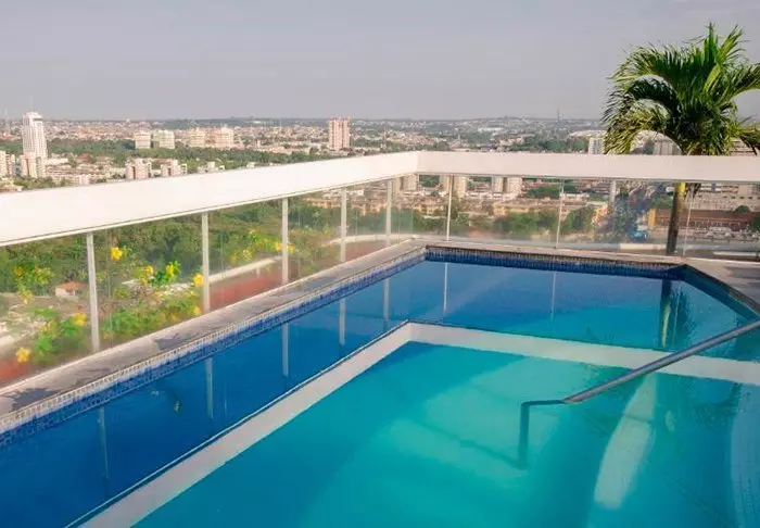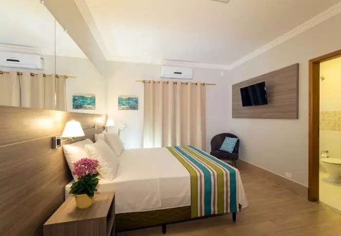 De 135 rummelige lejligheder har alle sammen balkon med en lækker udsigt over Manaus, TV, wi-fi, aircondition, pengeskab og et lille køkken med mikrobølgeovn.