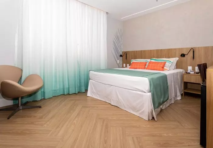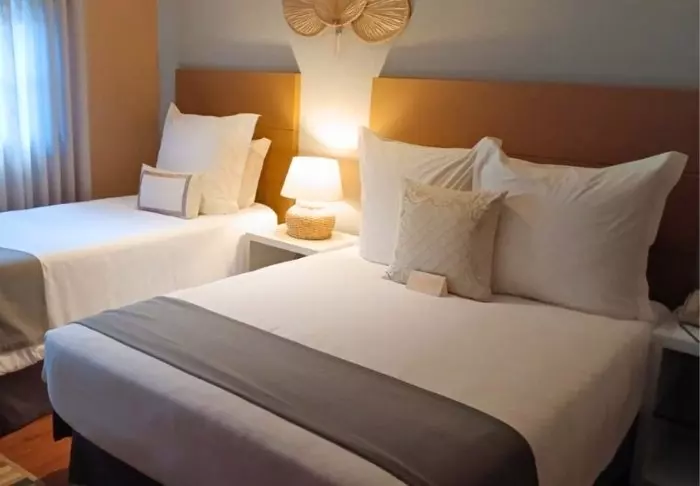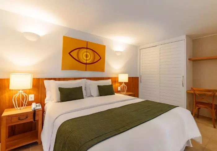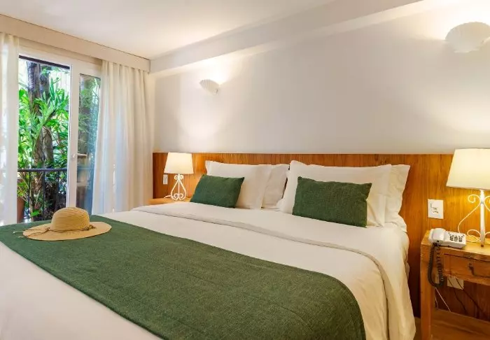 Værelserne er ikke så store, men smukt indrettet i naturmaterialer med rolige farver. De er alle udstyret med eget badeværelse, aircondition, smart-TV, minibar og wi-fi, og er en god base i Rio efter en dag fyldt med oplevelser.