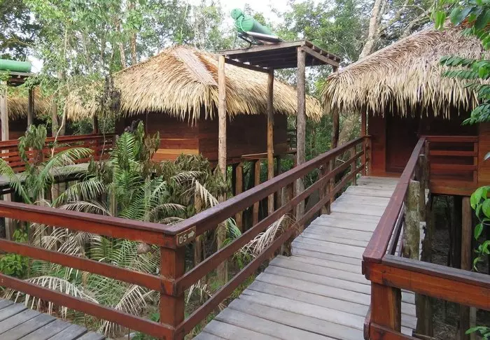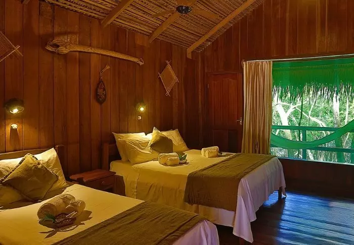 Ved ankomst til lodgen bliver du budt på en forfriskende velkomstdrink og får anvist dit værelse. Lodgen har blot 18 rustikke værelser og her er en hyggelig og familiær stemning. Værelserne er bygget af træ fra området og harmoniserer fint med den omkringliggende natur. Værelserne er simpelt indrettede, men pæne og rene og her er alt hvad du har brug for; en seng, loftsvifte og eget badeværelse med naturligt opvarmet vand. Der er desuden myggenet for vinduerne, selvom den høje pH-værdi i Tupana-floden gør at myggene har svært ved at reproducere sig, hvorfor myg det meste af året ikke er et problem her.