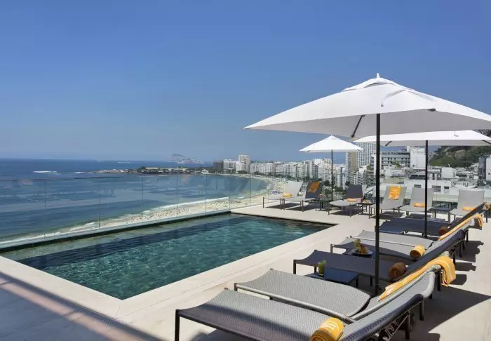 Du finder næsten ikke en bedre beliggenhed i Rio. Det nyåbnede hotel fra 2018 ligger helt ned til Copacabana-stranden, og fra hotellets tagterrasse er der en betagende udsigt ned over den smukke, livlige strand.