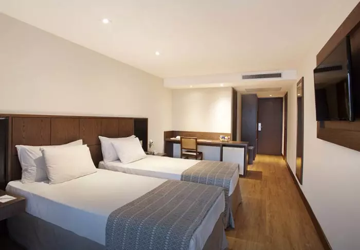 Hotellet har 196 rummelige værelser, alle med aircondition, minibar, værdiboks, tv og gratis wi-fi. Badeværelserne er fuldt udstyret med både toiletartikler og hårtørrer.