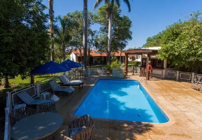 Midt på dagen er der ”siesta” tilbage på lodgen, hvor du kan slappe af ved den lille swimmingpool, mens du nyder kølige drikkevarer fra baren.