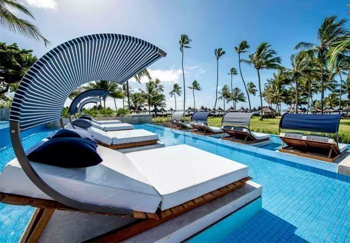Du kan køle dig ned i én af resortets 7 swimmingpools eller dase på stranden i de komfortable liggestole med tilhørende parasoller.
