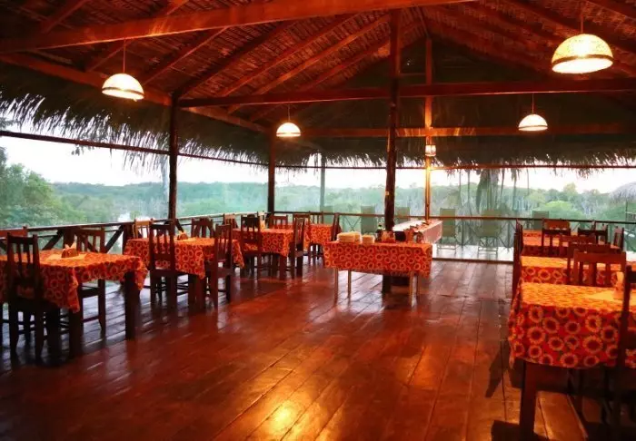 Dine måltider serveres som buffet i lodgens restaurant. Du kan både sidde indenfor eller ude på terrassen og nyde din mad. Herfra får du en skøn udsigt ned over floden og udover den frodige regnskov.