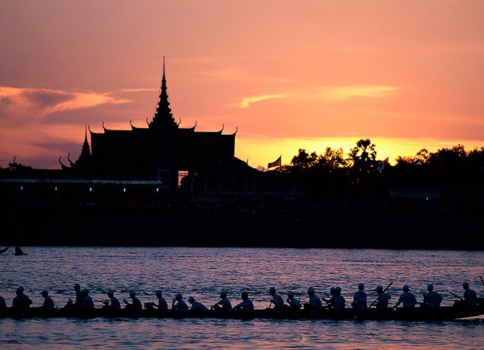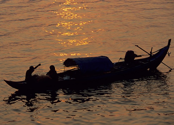 Gå ombord på en charmerende flodbåd og få indblik i livet langs Mekong-floden, hvor kvinderne udfører deres daglige gøremål, mens børnene leger i vandet omkring dem. Hold øje med de små fiskerbåde der trækker nettene i land efter en lang dag med fiskeri på floden. I takt med at solen går ned, lyser himlen op i varme farver og du kan nyde en drink, mens du beundrende betragter byens skyline med det smukke kongepalads, sølvpagoden og Wat Ounalom. Du får en fin, anderledes og rolig oplevelse af byen på afstand fra menneskemængderne. Der kan købes drikkevarer og snacks ombord. Turen varer ca. 1 time og 15 minutter, og du bliver hentet på dit hotel og bragt tilbage igen.