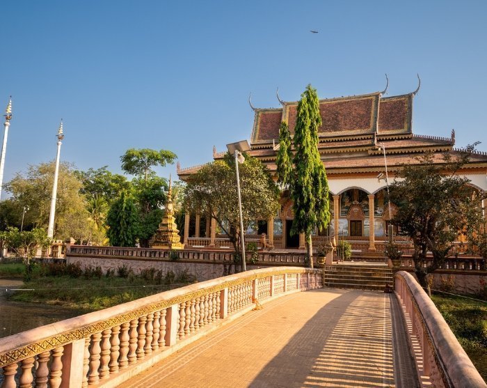 Efter frokosten fortsætter turen til et nærliggende buddhistisk tempel. Her oplever du en traditionel khmer-velsignelse, udført af en buddhistisk munk, som er med til at give dig et unikt indblik i den lokale religiøse praksis og tro.